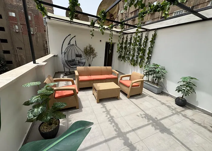 El Giza train station is around 10 minutes' drive from the accommodation and Cairo International airport is a 22-minute drive away.